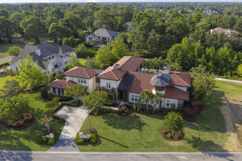 Located in the exclusive Luxury-home community of Landfall a Mediterranean Masterpiece like no other proudly overlooks Landfall Lake with views of the ICW and Ocean.