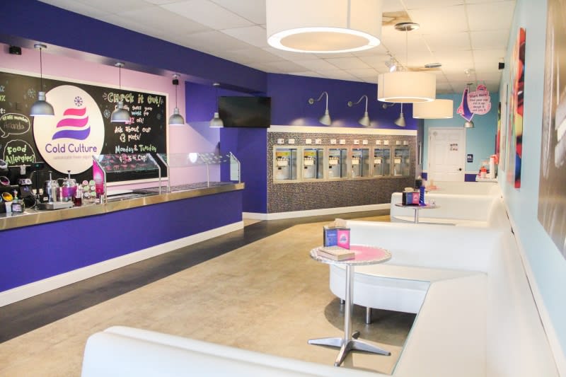 Formerly part of the Fuzzy Peach franchise, Cold Culture was established in 2015. Known for using YoCream Yogurt for its frozen treats, Cold Culture is a fun, bright environment with hundreds of potential combinations of flavors and toppings. 40+ toppings are available at the bar after you fill up on your choice of flavors at the 6 dispensers.