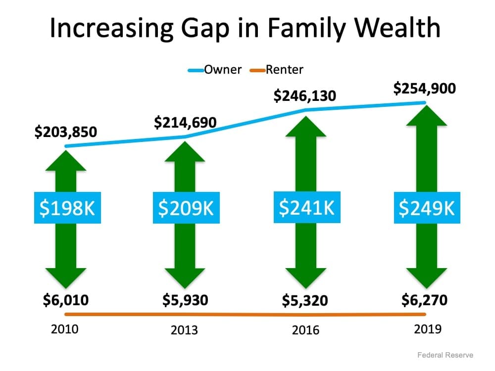 One of the best ways to build your family’s financial future is through Real Estate – homeownership. Recent data from the Federal Reserve indicates the net worth of a homeowner is over 40 times greater than that of a renter. Maybe it’s time to start thinking about buying a home, especially when they’re so affordable in today’s market. Every three years the Survey of Consumer Finances shows the breakdown of how owning a home helps build financial security. In the graph below, we see that the average net worth of homeowners continues to grow, while the net worth of renters tends to hold fairly steady and be significantly lower than that of homeowners. The gap between owning and renting just keeps getting wider over time, making homeownership more and more desirable for those who are ready.Owning a home is a great way to build family wealth.
