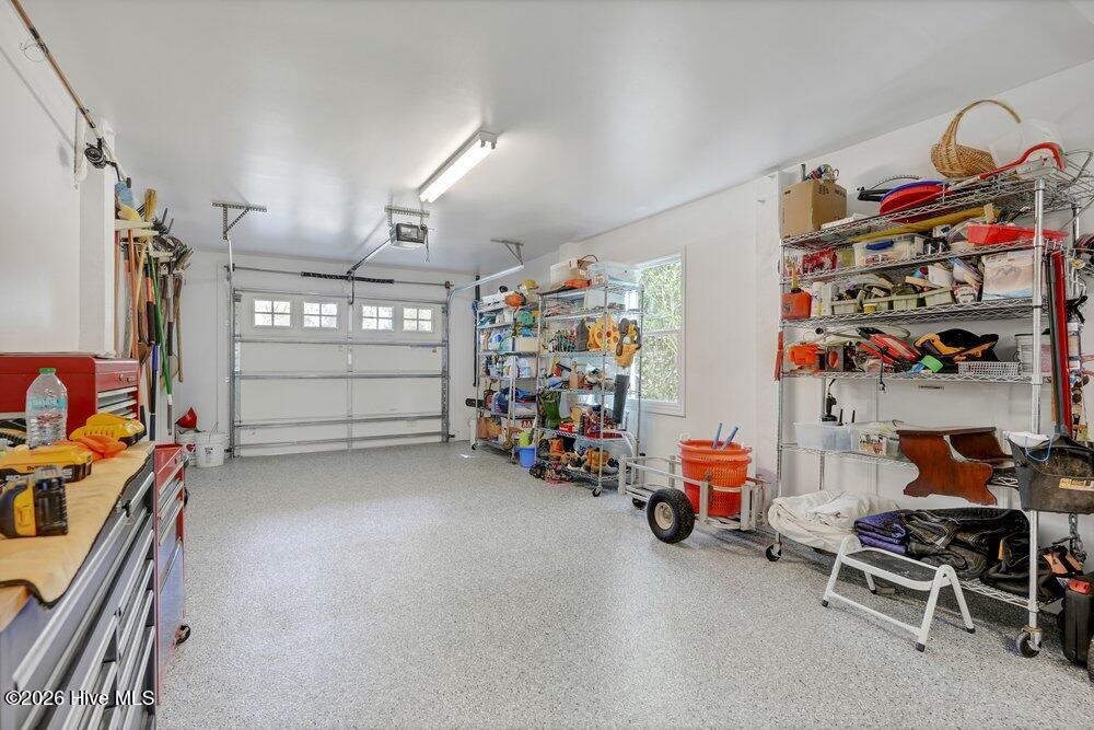The expansive garage has fresh epoxy flooring, half-bath, workshop space, boat storage, and room for golf carts, fishing gear, and outdoor equipment. This isn't just a garage, it's a wow factor. Outdoor living spaces are just as impressive as the interior, featuring a large waterfront deck, covered patio areas, and a firepit along the seawall. Whether coming in from the boat, grilling with friends, or spending the evening by the water, the layout allows for an easy flow between the dock, outdoor living areas, and main living spaces.