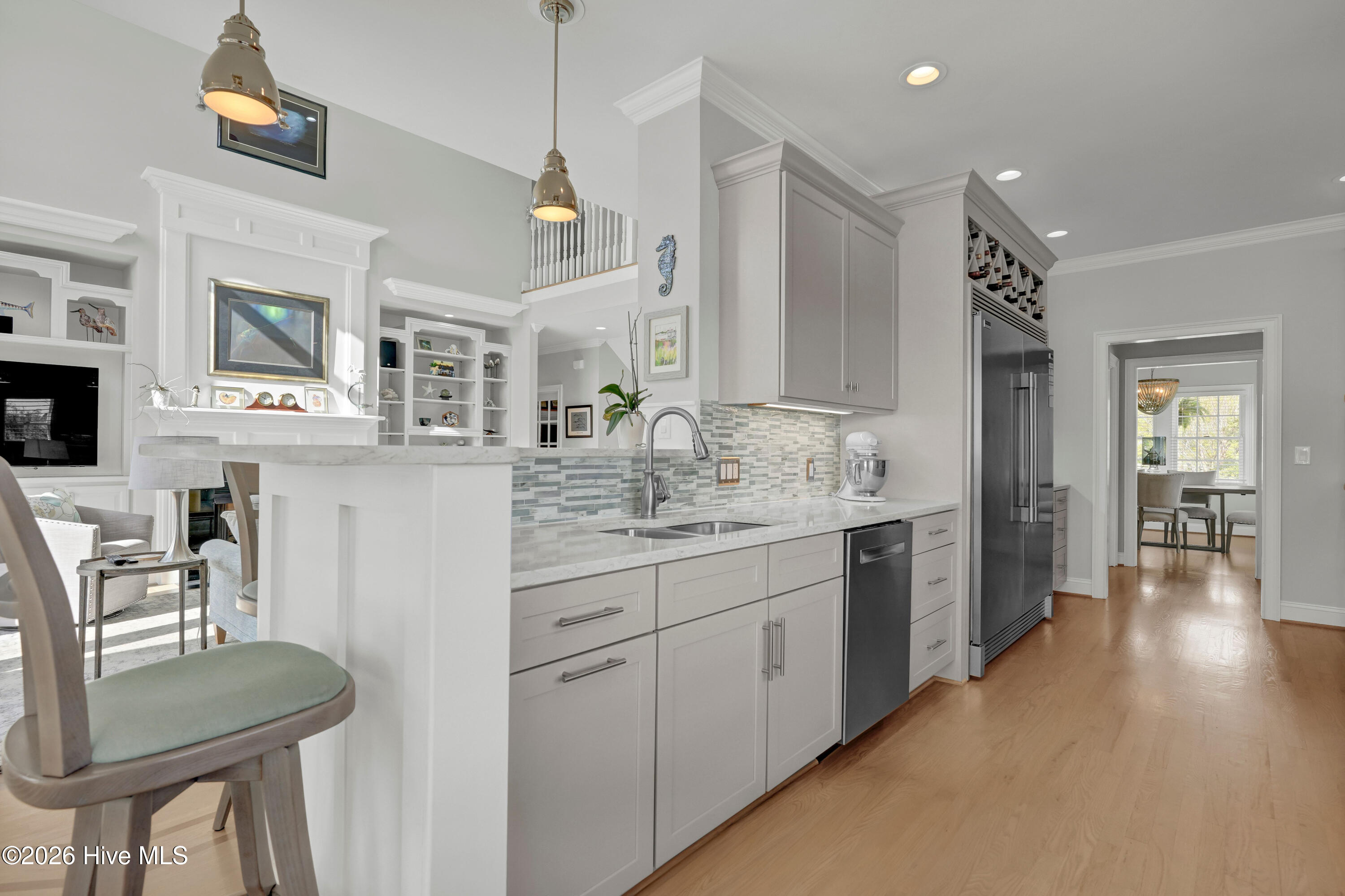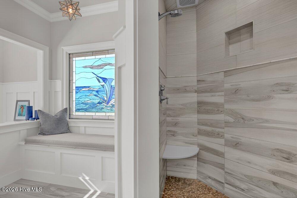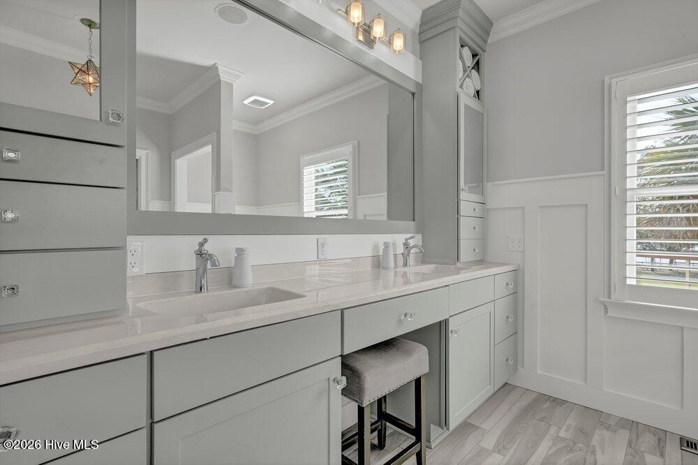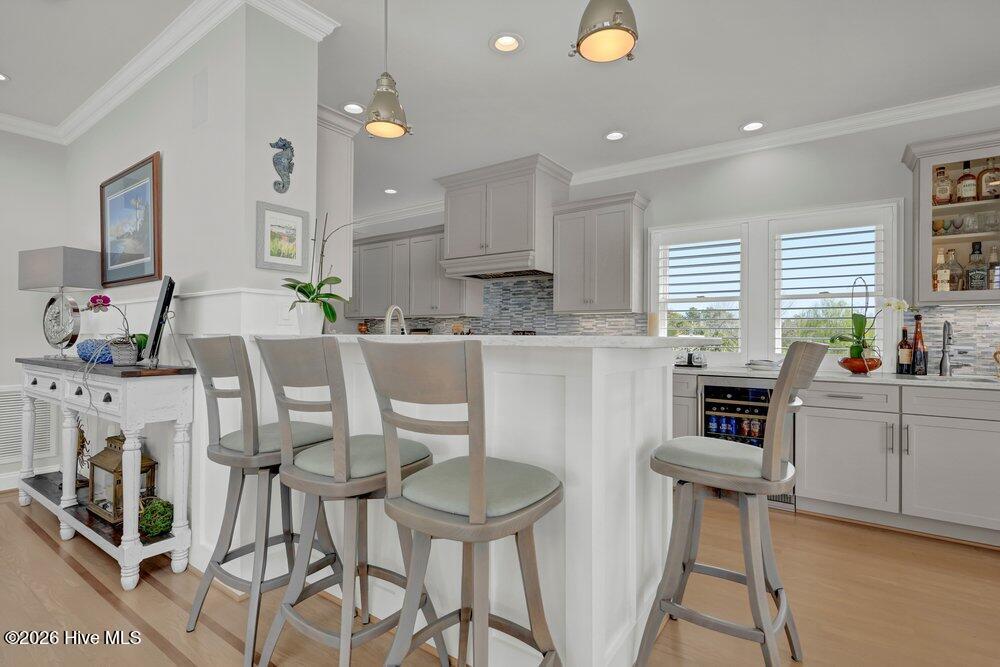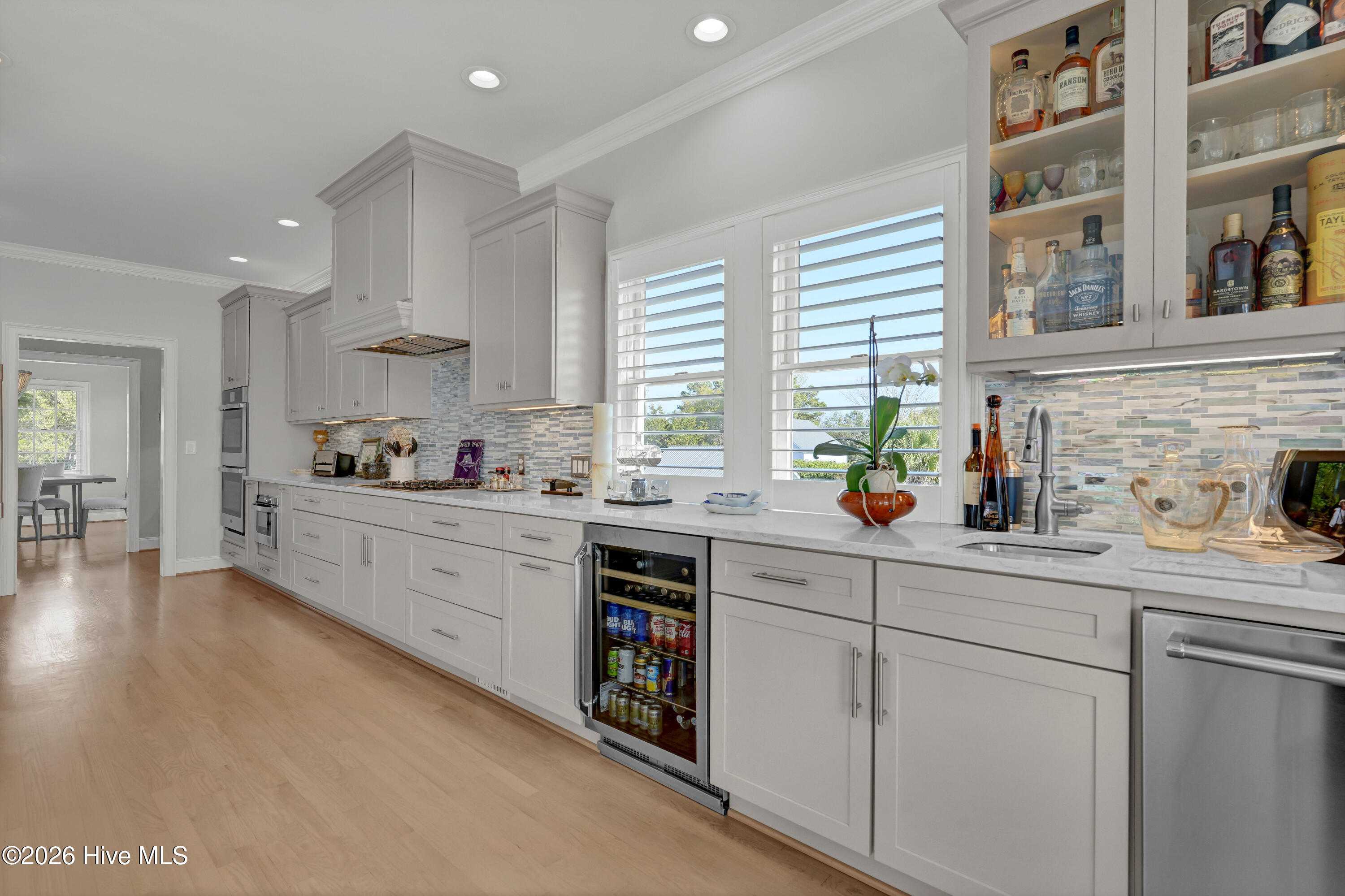 Every detail has been thoughtfully designed to maximize comfort, style, and those incredible water views. Inside, the home has been meticulously reimagined with a focus on quality, style, and livability, featuring light-filled interiors, open-concept gathering spaces, and a dedicated home office. Elevated finishes throughout create a seamless blend of modern sophistication and timeless design. The kitchen is a standout--ideal for gathering with friends and family, whether it's a casual weekend or a full house for the holidays. The primary suite offers plenty of space and comfort, with a spa-inspired bathroom featuring a walk-in shower, dual vanities, custom cabinetry, and a beautiful stained glass window. Two additional bedrooms with ensuite bathrooms and an additional den and flex room add comfort and convenience.
