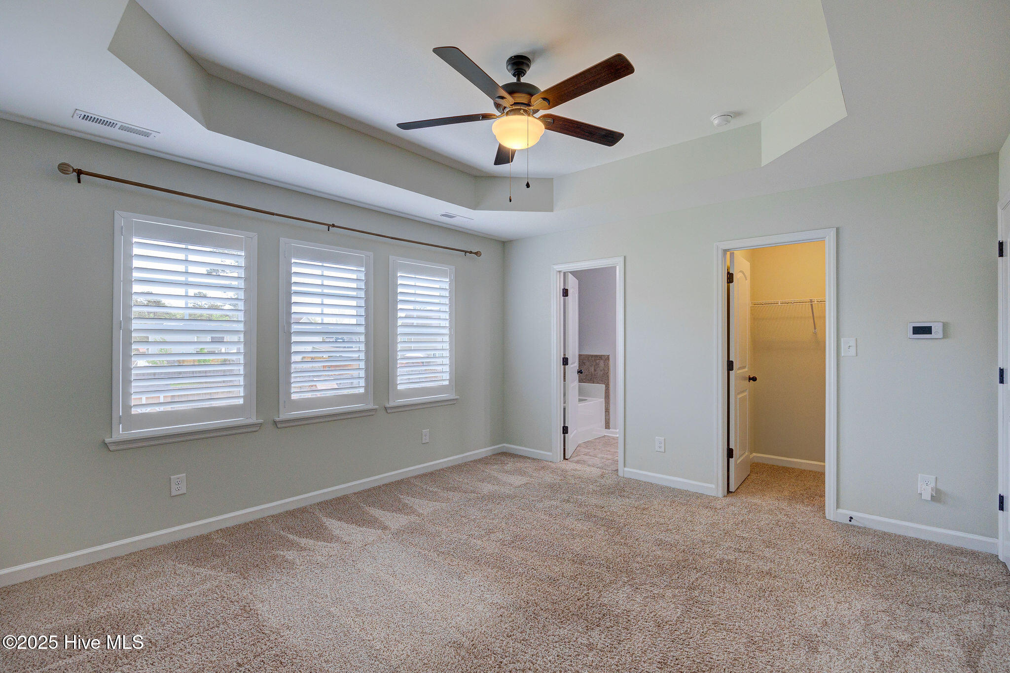 Upstairs, four bedrooms are thoughtfully arranged to maximize privacy. The serene primary suite offers a tray ceiling, two walk-in closets, and a spa-inspired bathroom with dual vanities, a soaking tub, and separate shower. Three additional bedrooms share a full hallway bath, and the upstairs laundry room adds everyday convenience.