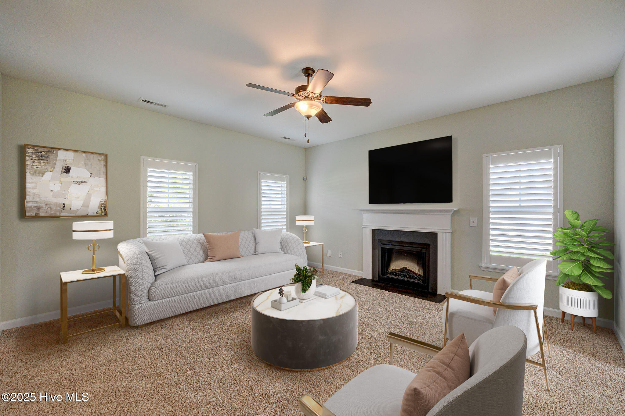 From the moment you arrive, classic plantation shutters, elegant architectural touches, and undeniable curb appeal set a warm, welcoming tone. Inside, the main floor features durable, low-maintenance laminate flooring throughout most living areas, while plush carpet in the cozy living room invites you to unwind by the fireplace on cool evenings.
