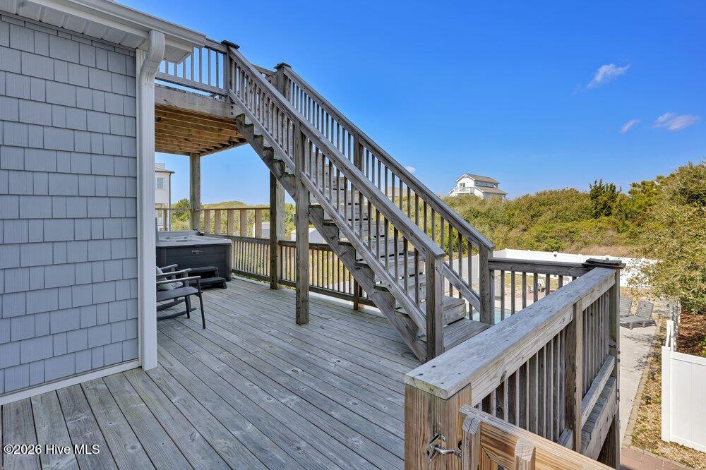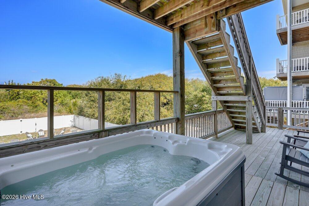Outdoor living is a major highlight, featuring a large private heated saltwater pool, first-floor hot tub, expansive front and back decks with plenty of seating areas, and an outdoor shower for rinsing off after the beach. The oversized lot provides additional space and separation that is becoming increasingly rare along Island Drive.
