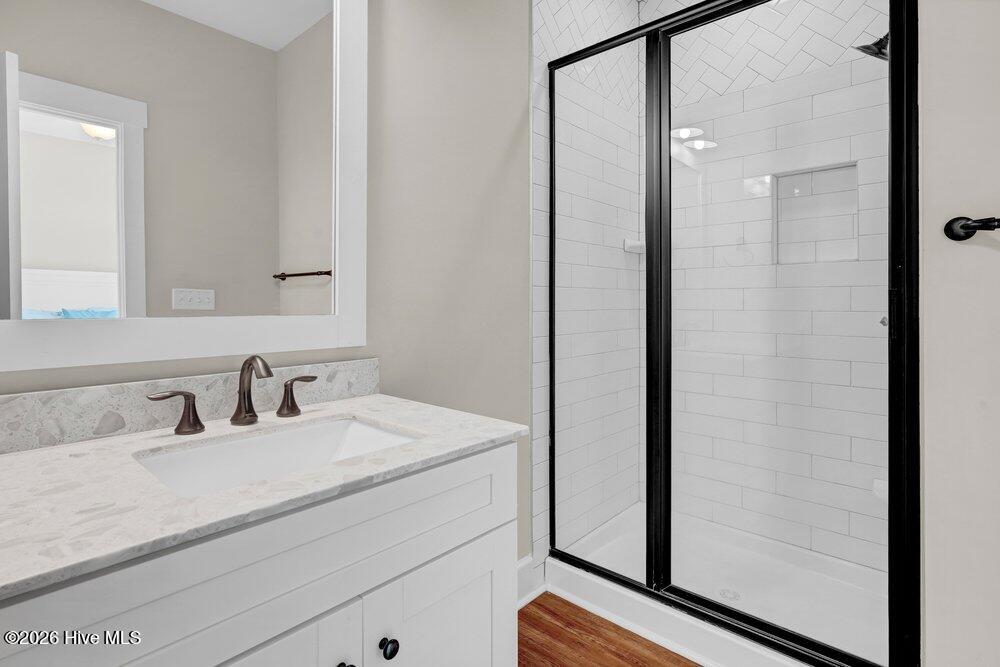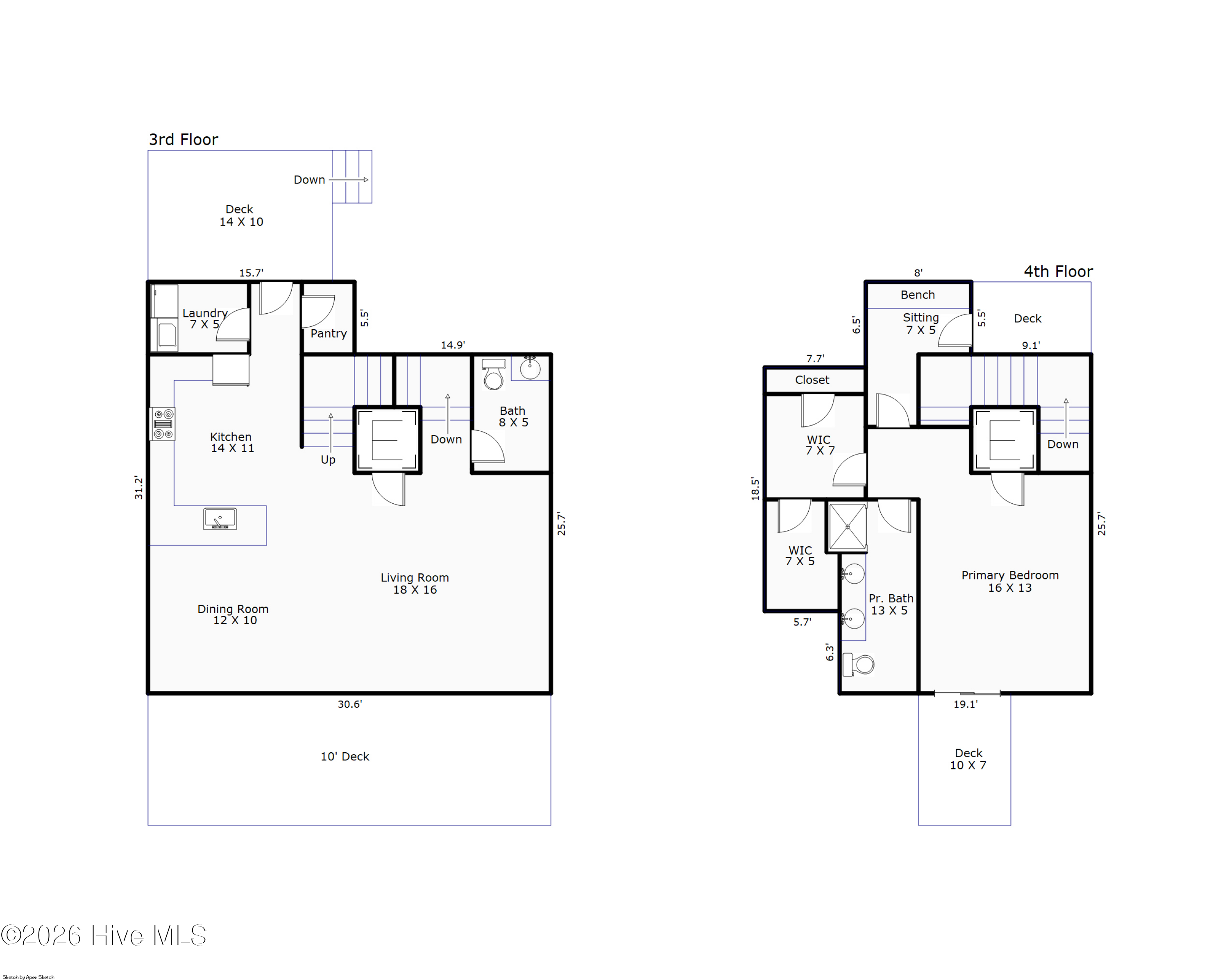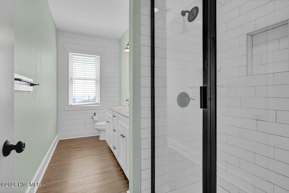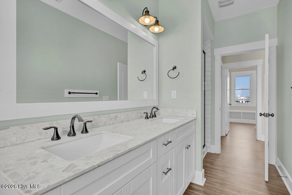 The entire top floor is dedicated to the private king primary suite, complete with a coffee bar, mini fridge, and two private decks -- the perfect place to start the morning or unwind at the end of the day. The custom primary bath features a subway tile shower and with PedraFina Bianco marble dual vanity, creating a spa-like atmosphere.